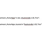 הנכס ממוקם במרחק של 8 דקות הליכה על קתדרלת טרייר וכ-12 דקות הליכה על מרחצאות הקיסר בטריר. הדירה זה כ-10 דקות הליכה על מרכז העיר טרייר. בית קפה Dolce Cielo היא בקרבה של 400 מטר משם.